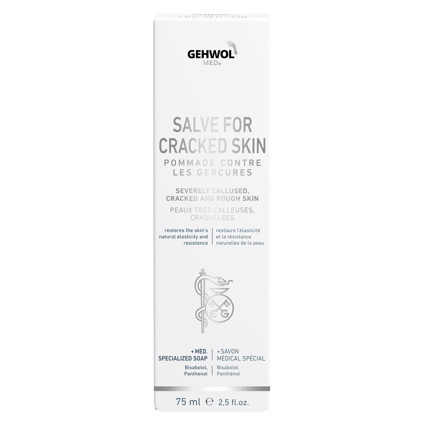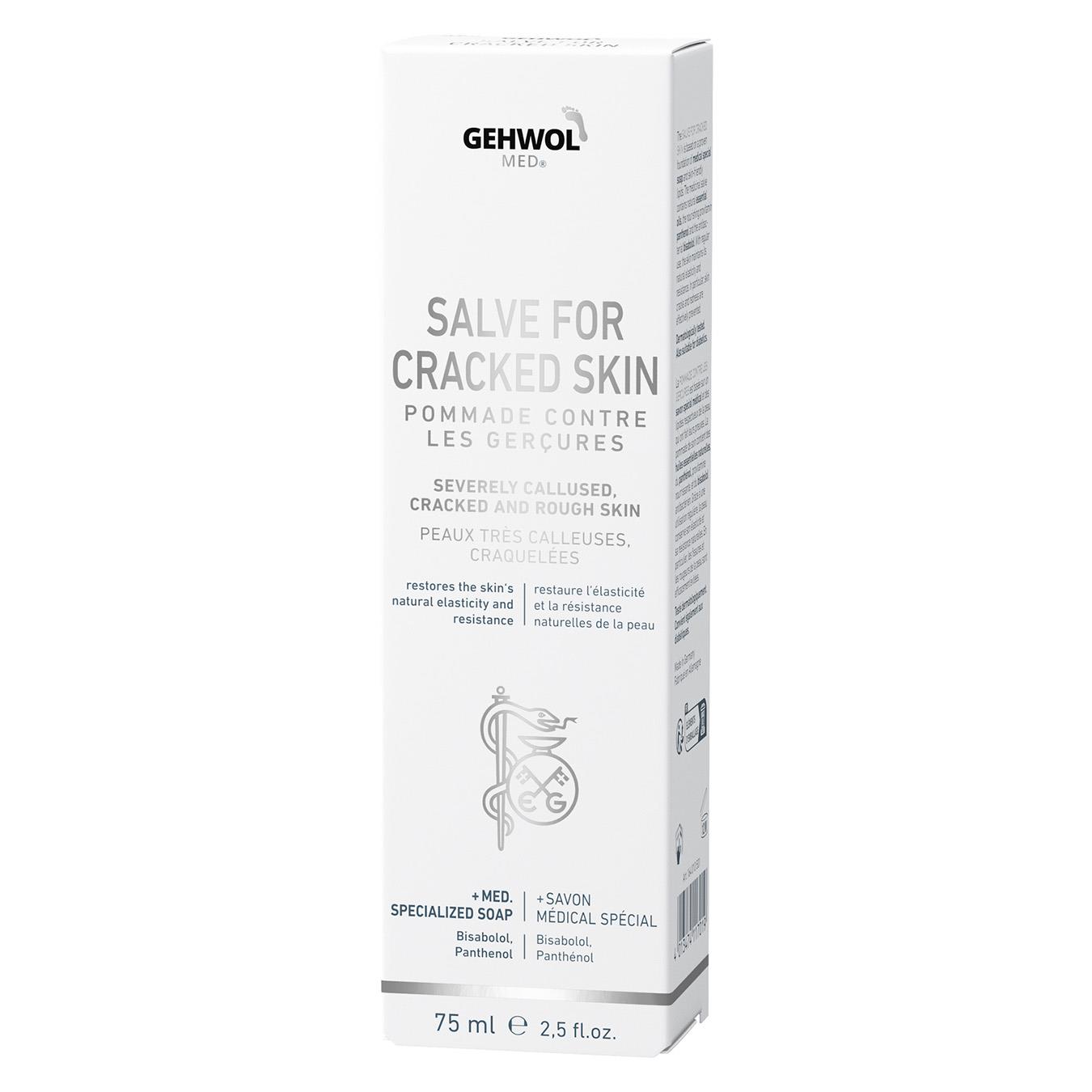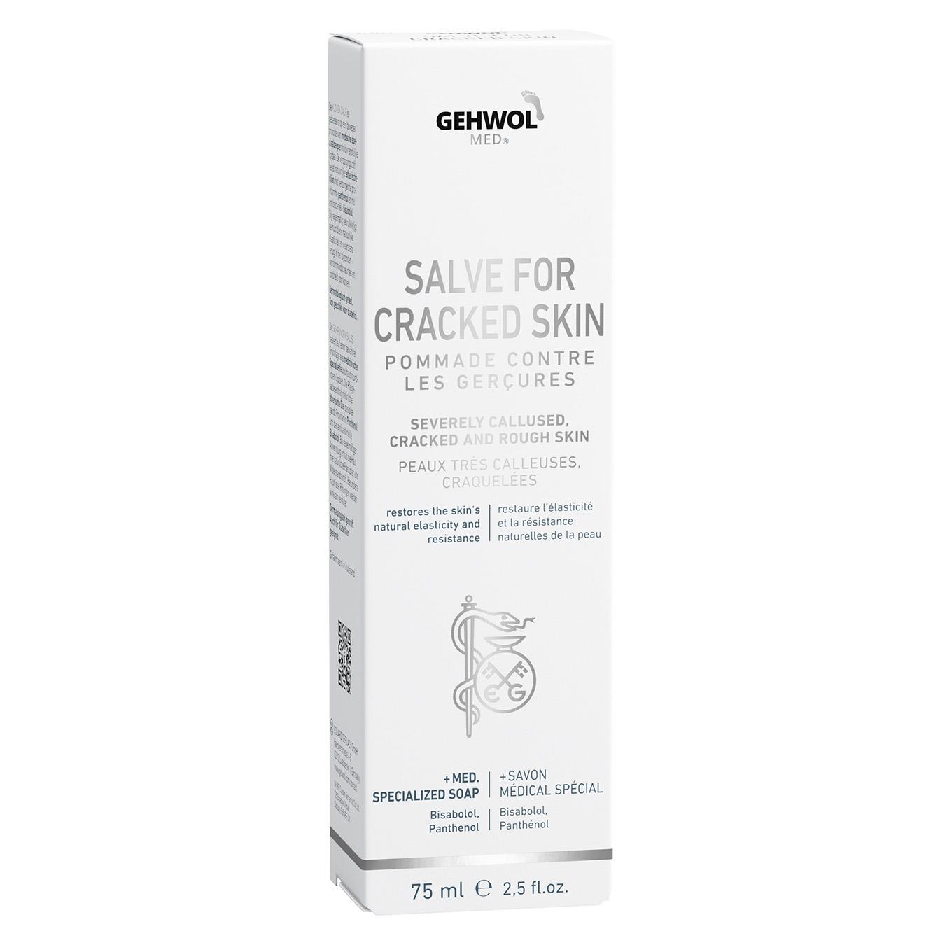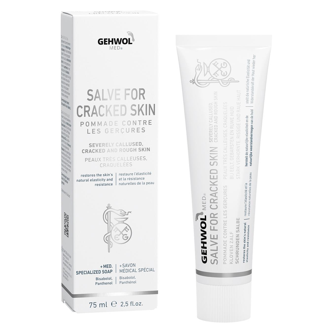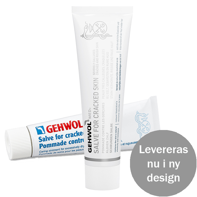 Gehwol med® Schrundensalva är en fet, vårdande fotkräm för spruckna, torra och hårda fötter med svår hornhud. Genom regelbunden användning återfår huden sin naturliga elasticitet och motståndskraft. Gehwol med® Schrundensalva innehåller en verksam kombination av naturliga eteriska oljor, den vårdande hudvitaminen Panthenol och det inflammationshämmande kamomillextraktet Bisabolol i en bas av medicinsk specialtvål och speciellt utvalda hudvänliga fetter.