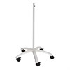 Detta golvstativ har 5 ben för att stå stadigt. Det har bromsade hjul Som tillval finns en extra vikt (art. 19062) att fästa i basen, för att stativet inte skall tippa när man ändrar position på lampan eller då man flyttar stativet.