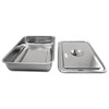Instrumentlåda med lock. Tillverkad i rostfritt stål. Passar för desinfektion och förvaring av de flesta instrument inom fotvård. Passar naturligtvis även för andra förvaringsändamål.
