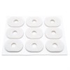 Små ovala filtringar med runt hål i mitten, tillverkade av 3 mm tjock vit filt.
