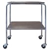 Rostfritt instrumentbord på hjul med två fasta hyllplan.