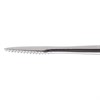En ensidig, enkelhuggen nageltrångsfil tillverkad av rostfritt stål. Nageltrångsfilen har ett räfflat skaft för att ge bra grepp.