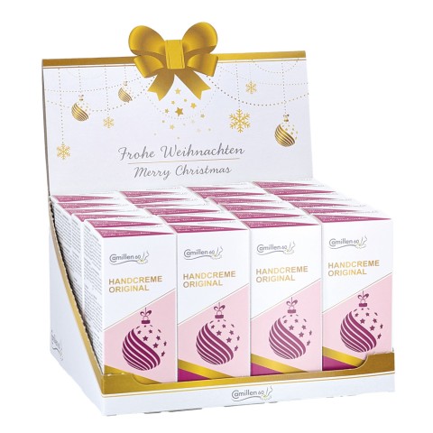 Skyddande och milt vårdande handbalsam. Kamomillblommans beståndsdelar, i synnerhet azulen lugnar huden. Allantoin samt det hudvårdande eucerinet och vaselinet motverkar sprucken och torr hud. Huden blir mjuk och smidig. Camillen 60 Handbalsam tränger snabbt in i huden utan att lämna någon fet film på huden. De vårdande och återfettande komponenterna skyddar huden i vardagen på ett optimalt sätt.