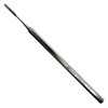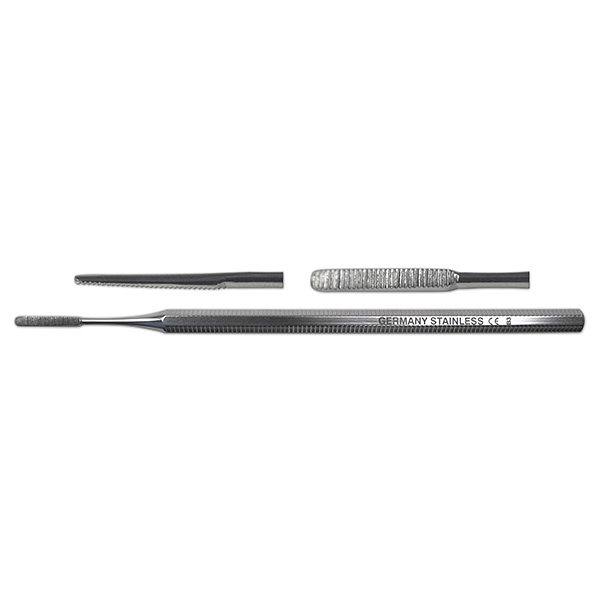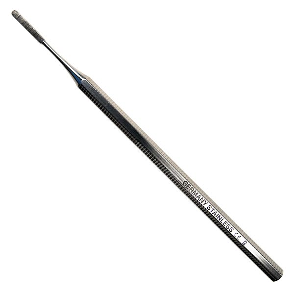 En enkelhuggen, tunn nageltrångsfil med plan rygg tillverkad av rostfritt stål i Tuttlingen, Tyskland. Den är tunn, så att det går lätt att komma åt i nagelfalsen, för att fasa av nagelkanten. Eftersom den har plan rygg, minskar risken för att man ska skada omkringliggande hud. Nageltrångsfilen har ett räfflat skaft för att ge bra grepp.