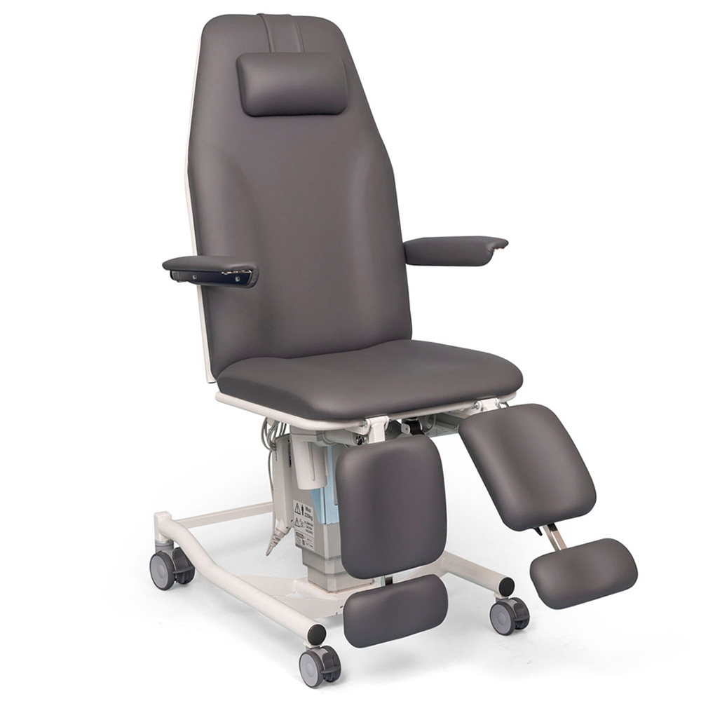 På Ergo 2.0 justeras alla funktioner elektriskt med antingen hand- eller fotkontrollen. Du höjer och sänker stolen, vickar/tiltar sätet och justerar benstöden. Efter behandlingen kan du trycka på en knapp på handkontrollen, så går stolen tillbaka till grundläge.